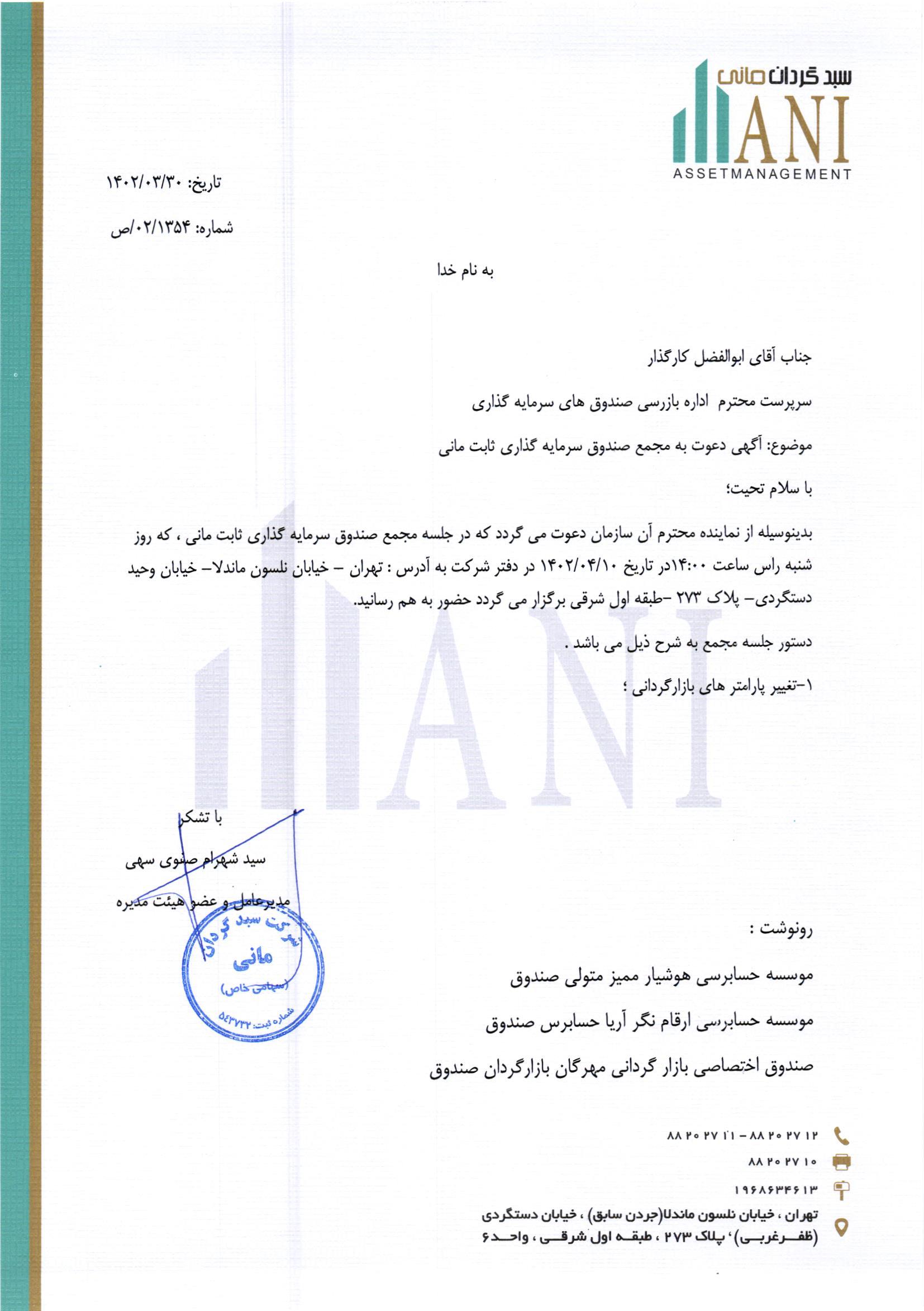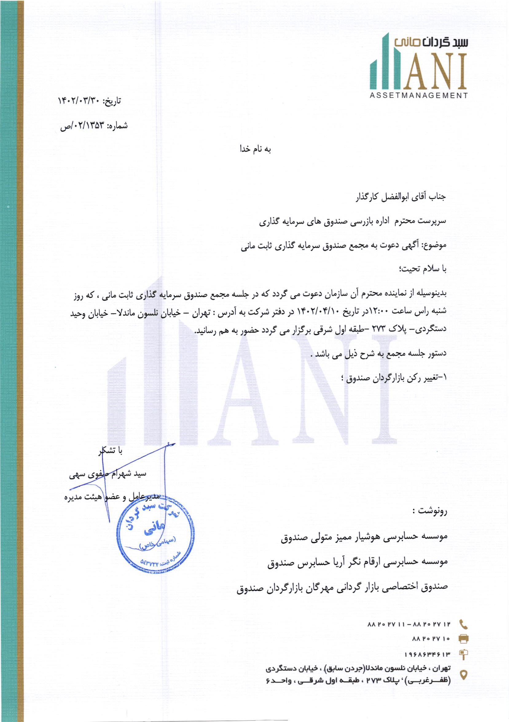 دعوت به مجمع صندوق مورخ (اساسنامه ای)1402/04/10